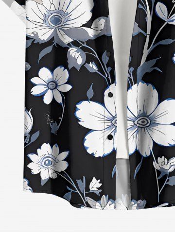 Plus Size Flower Leaf Print Buttons Pocket Hawaii Shirt For Men - Noir - Noir