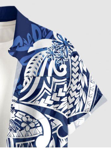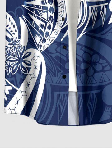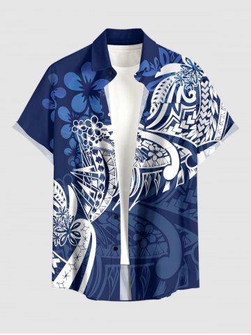 Plus Size Flower Leaf Print Buttons Pocket Hawaii Shirt For Men - Bleu Profond - 6xl