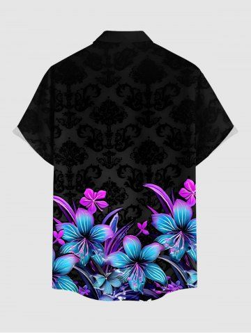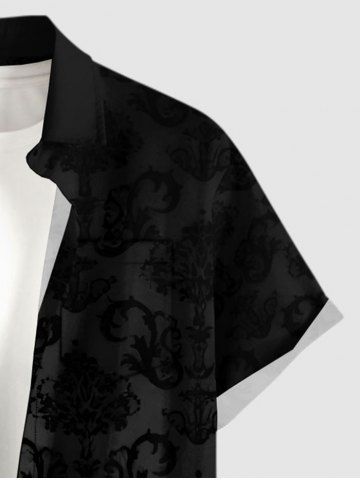 Plus Size Flower Leaf Print Hawaii Button Pocket Shirt For Men - Noir - Noir