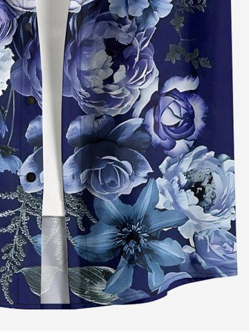 Plus Size Flower Leaf Print Hawaii Button Pocket Shirt For Men - Bleu Profond - Xl