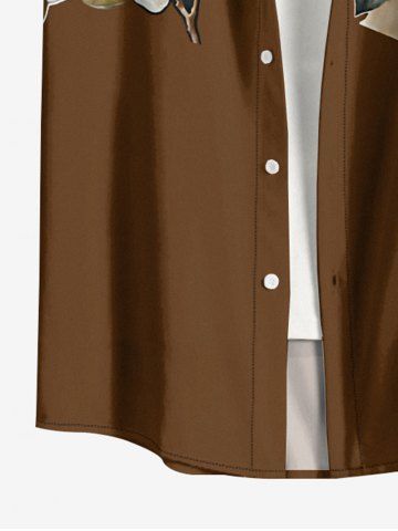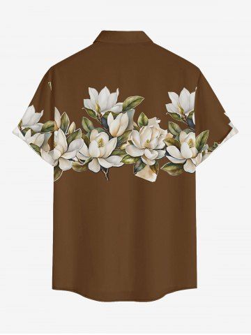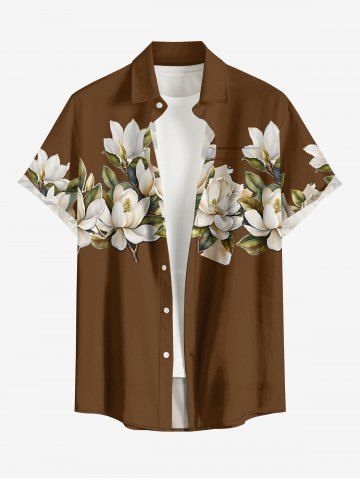 Plus Size Flower Leaf Print Hawaii Button Pocket Shirt For Men - Brun - Brun