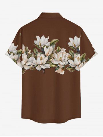 Plus Size Flower Leaf Print Hawaii Button Pocket Shirt For Men - Brun - Brun