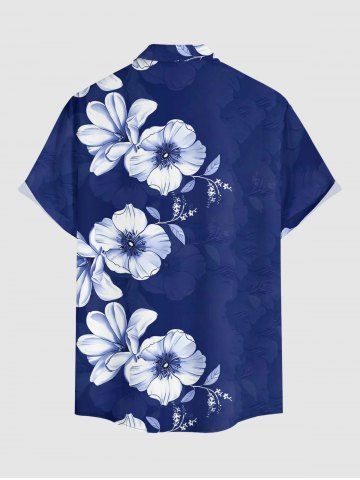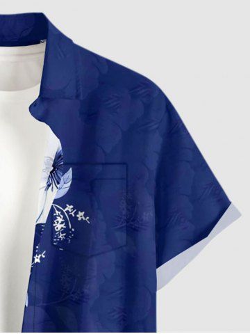 Plus Size Flower Leaf Print Hawaii Button Pocket Shirt For Men - Bleu - Bleu