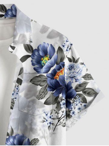 Plus Size Flower Leaf Print Hawaii Buttons Pocket Shirt For Men - Blanc - Blanc