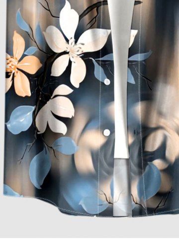 Plus Size Flower Ombre Print Hawaii Button Pocket Shirt For Men - Bleu-gris - 6xl