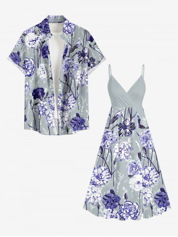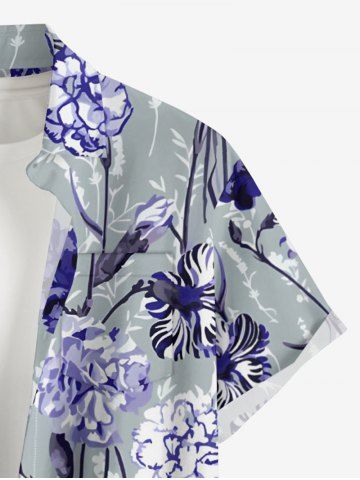 Plus Size Flower Plant Print Hawaii Button Pocket Shirt For Men - Bleu Marine - Bleu Marin