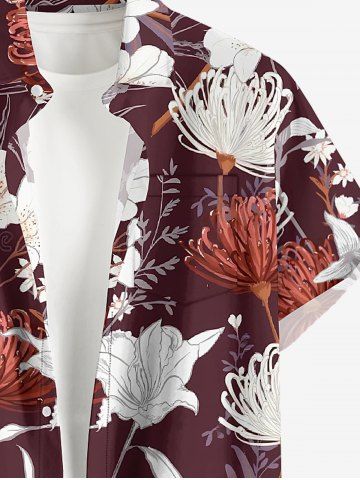 Plus Size Flower Plant Print Hawaii Button Pocket Shirt For Men - Rouge Foncé - 6xl
