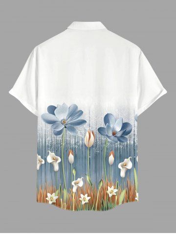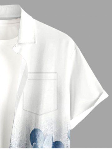 Plus Size Flower Plant Print Hawaii Button Pocket Shirt For Men - Bleu-gris - 3xl