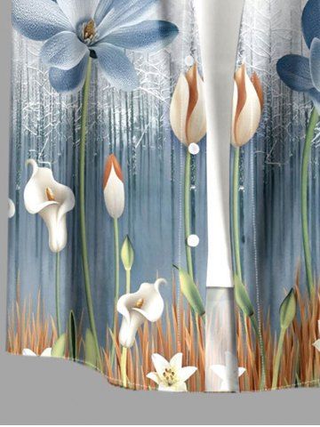 Plus Size Flower Plant Print Hawaii Button Pocket Shirt For Men - Bleu-gris - 5xl