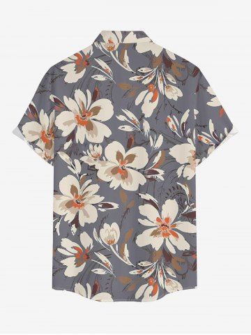 Plus Size Flower Print Hawaii Button Pocket Shirt For Men - Gris Clair - Gris Clair