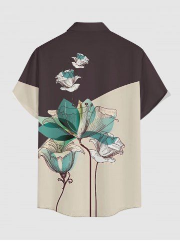 Plus Size Flower Print Hawaii Button Pocket Shirt For Men - Marron Foncé - 4xl