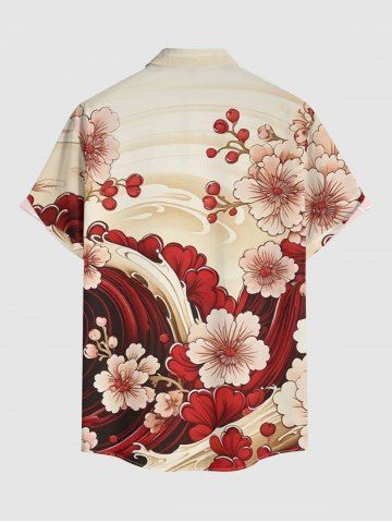 Plus Size Flower River Print Hawaii Button Pocket Shirt For Men - Rouge Foncé - Xl