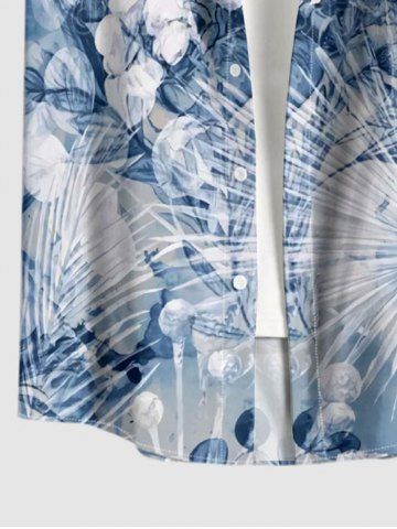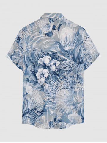 Plus Size Flower Tropical Leaf Print Buttons Pocket Hawaii Shirt For Men - Bleu - Bleu