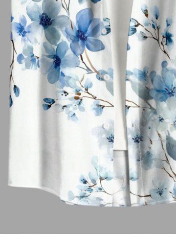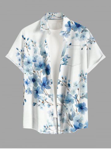 Plus Size Flowers Branch Print Buttons Pocket Hawaii Shirt For Men - Bleu Clair - Bleu Clair