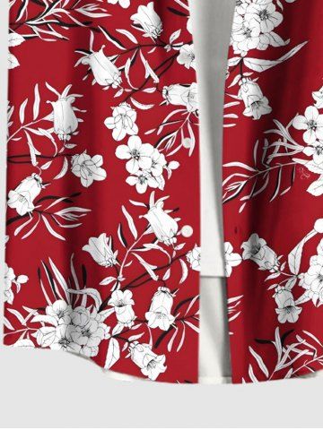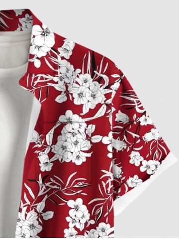 Plus Size Flowers Leaf Print Buttons Pocket Hawaii Shirt For Men - Rouge - Rouge