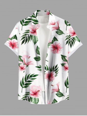 Plus Size Flowers Leaf Print Buttons Pocket Hawaii Shirt For Men - Blanc - Blanc