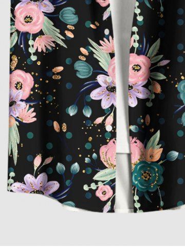 Plus Size Flowers Leaf Print Buttons Pocket Hawaii Shirt For Men - Noir - Noir