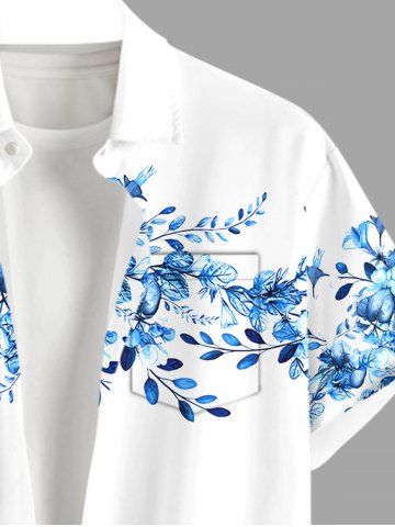 Plus Size Flowers Leaf Print Buttons Pocket Hawaii Shirt For Men - Blanc - Blanc