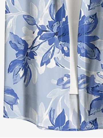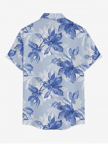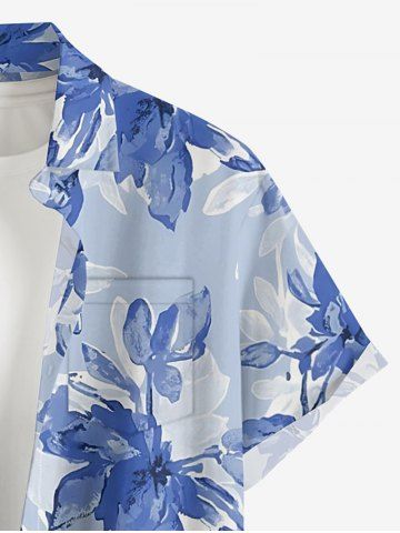Plus Size Flowers Leaf Print Buttons Pocket Hawaii Shirt For Men - Bleu Ciel - Bleu Ciel