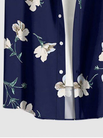 Plus Size Flowers Leaf Print Buttons Pocket Hawaii Shirt For Men - Bleu Profond - 6xl