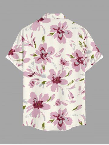 Plus Size Flowers Leaf Print Buttons Pocket Hawaii Shirt For Men - Rose - Rose