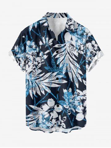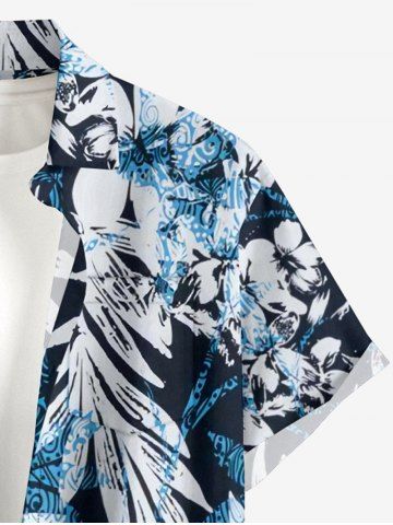 Plus Size Flowers Leaf Print Buttons Pocket Hawaii Shirt For Men - Pers - Xl