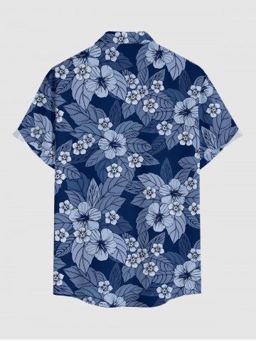 Plus Size Flowers Leaf Print Buttons Pocket Hawaii Shirt For Men - Bleu Profond - 5xl