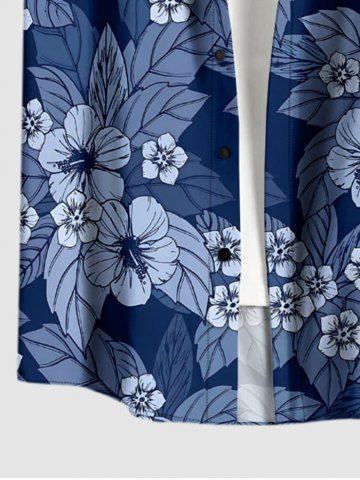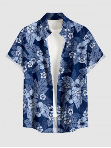 Plus Size Flowers Leaf Print Buttons Pocket Hawaii Shirt For Men - Bleu Profond - 6xl
