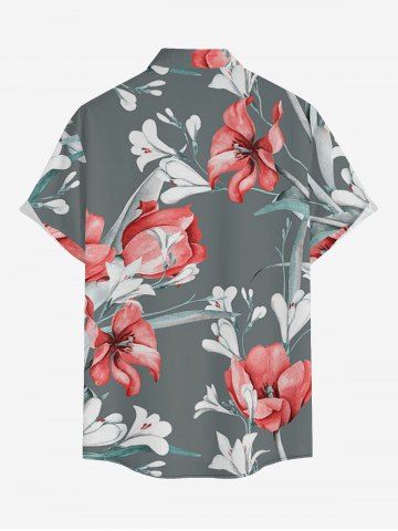 Plus Size Flowers Leaf Print Buttons Pocket Hawaii Shirt For Men - Gris Clair - Gris Clair