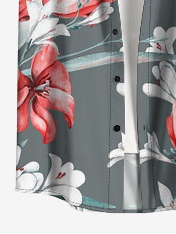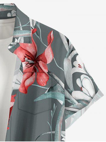 Plus Size Flowers Leaf Print Buttons Pocket Hawaii Shirt For Men - Gris Clair - Gris Clair