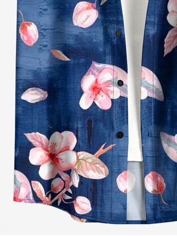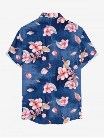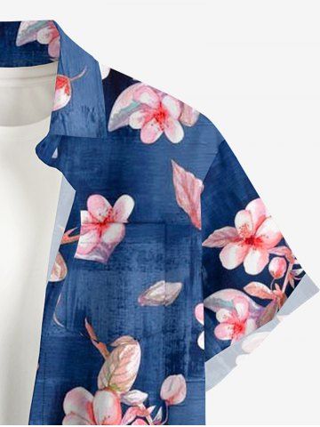 Plus Size Flowers Leaf Print Buttons Pocket Hawaii Shirt For Men - Bleu - Bleu