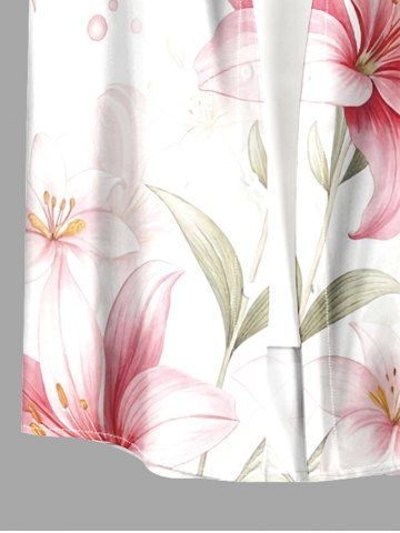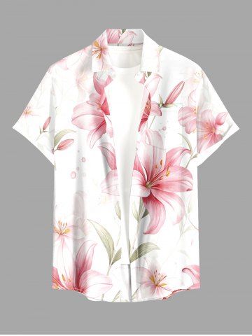 Plus Size Flowers Leaf Print Buttons Pocket Hawaii Shirt For Men - Rose - Rose