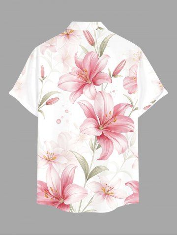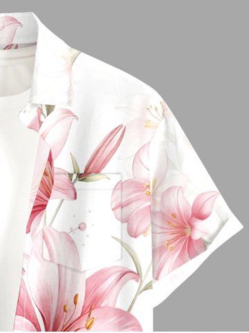 Plus Size Flowers Leaf Print Buttons Pocket Hawaii Shirt For Men - Rose - Rose