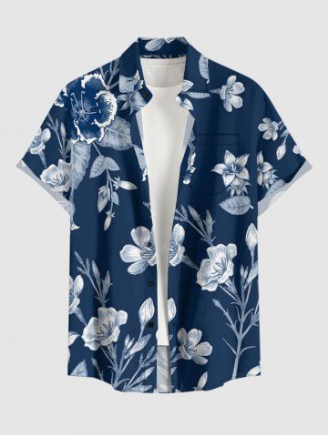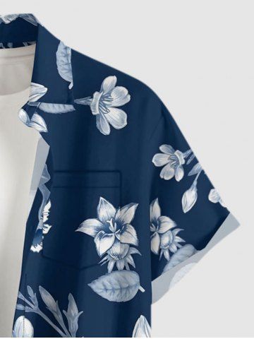 Plus Size Flowers Leaf Print Buttons Pocket Hawaii Shirt For Men - Cadetblue - 6xl