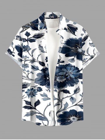 Plus Size Flowers Leaf Print Buttons Pocket Hawaii Shirt For Men - Bleu Profond - 5xl