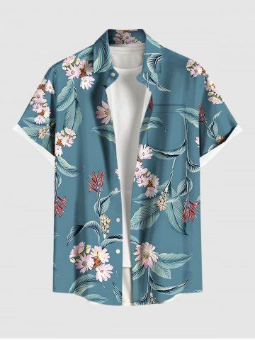 Plus Size Flowers Leaf Print Buttons Pocket Hawaii Shirt For Men - Paon Bleu - 4xl