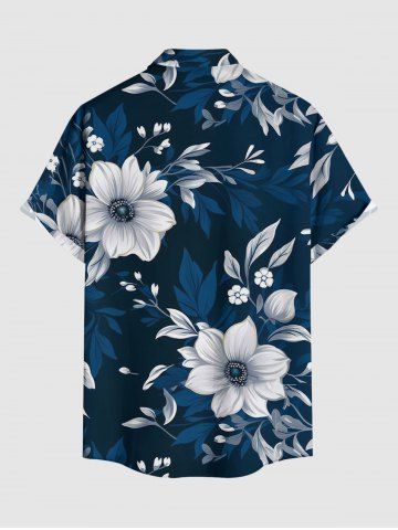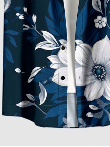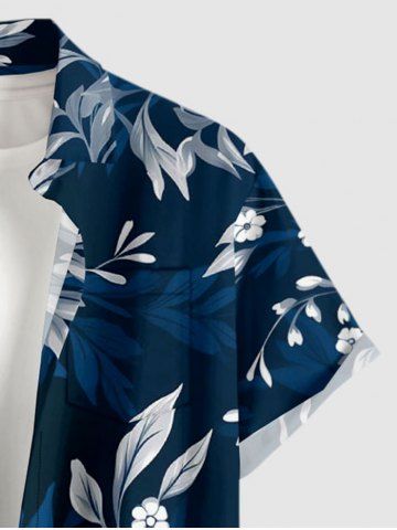 Plus Size Flowers Leaf Print Buttons Pocket Hawaii Shirt For Men - Cadetblue - L