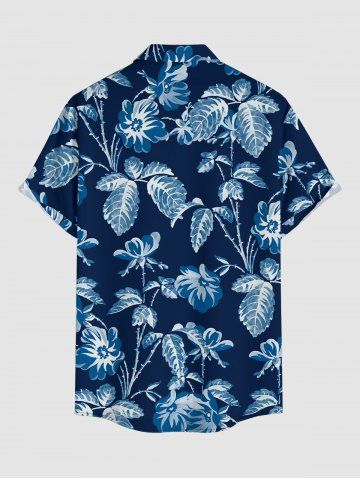 Plus Size Flowers Leaf Print Buttons Pocket Hawaii Shirt For Men - Bleu Profond - Xl