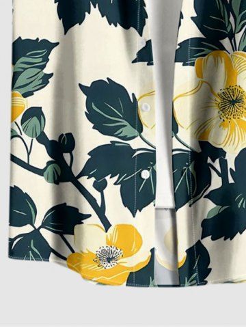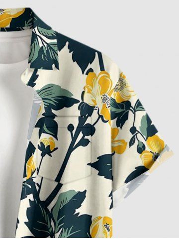 Plus Size Flowers Leaf Print Buttons Pocket Hawaii Shirt For Men - Jaune Clair - M
