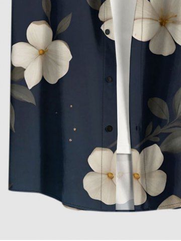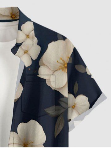 Plus Size Flowers Leaf Print Buttons Pocket Hawaii Shirt For Men - Noir - Noir