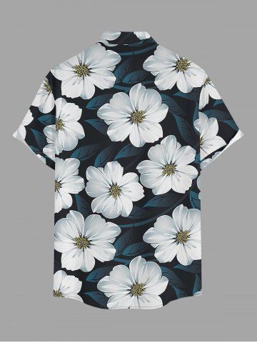 Plus Size Flowers Leaf Print Buttons Pocket Hawaii Shirt For Men - Paon Bleu - 5xl