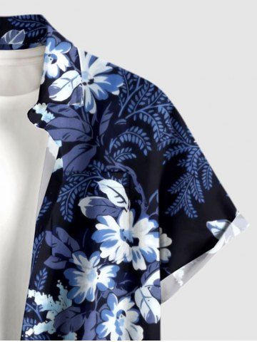 Plus Size Flowers Leaf Pritn Buttons Pocket Hawaii Shirt For Men - Bleu - Bleu
