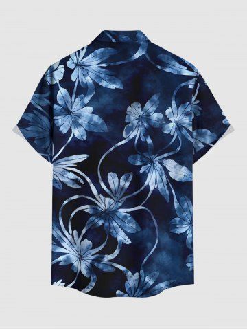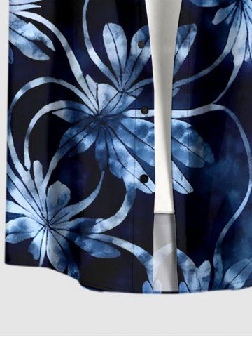Plus Size Flowers Leaf Tie Dye Print Buttons Pocket Hawaii Shirt For Men - Bleu Profond - L