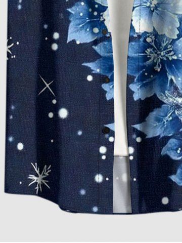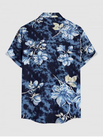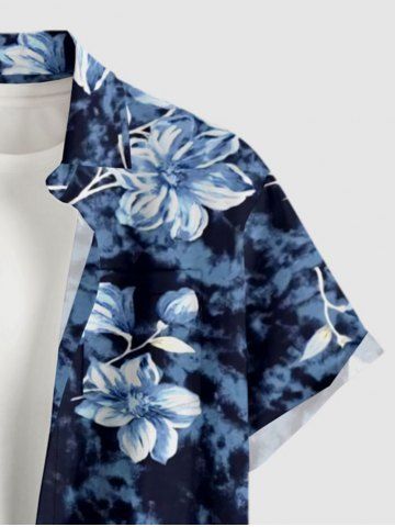 Plus Size Flowers Leaf Tie Dye Print Buttons Pocket Hawaii Shirt For Men - Bleu Profond - 3xl