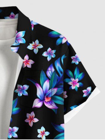 Plus Size Flowers Leaf Tropical Print Buttons Pocket Hawaii Shirt For Men - Noir - Noir
