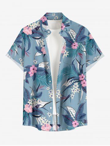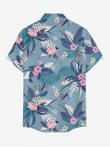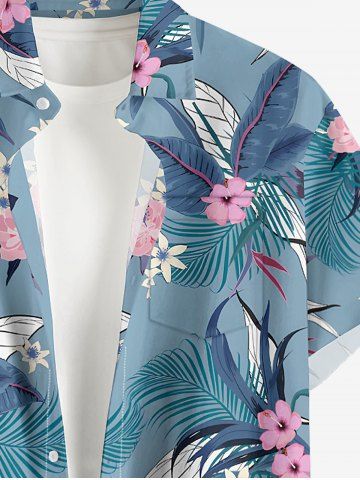 Plus Size Flowers Leaf Tropical Print Buttons Pocket Hawaii Shirt For Men - Bleu Clair - Bleu Clair