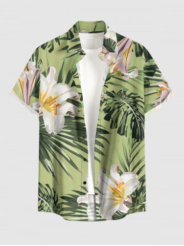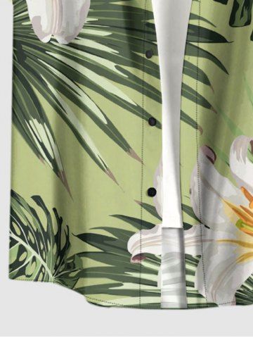 Plus Size Flowers Leaf Tropical Print Buttons Pocket Hawaii Shirt For Men - Vert Clair - Vert Clair