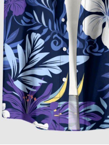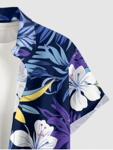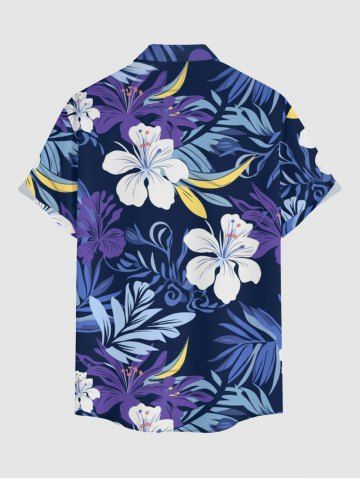 Plus Size Flowers Leaf Tropical Print Buttons Pocket Hawaii Shirt For Men - Cadetblue - S
