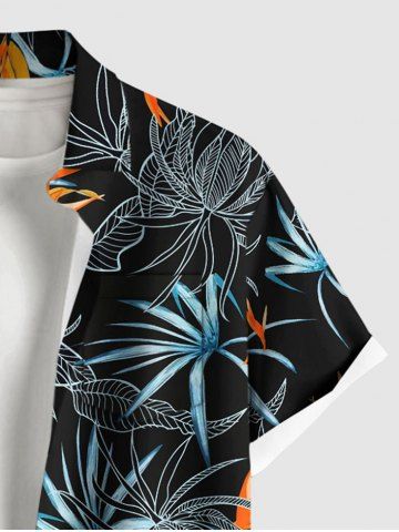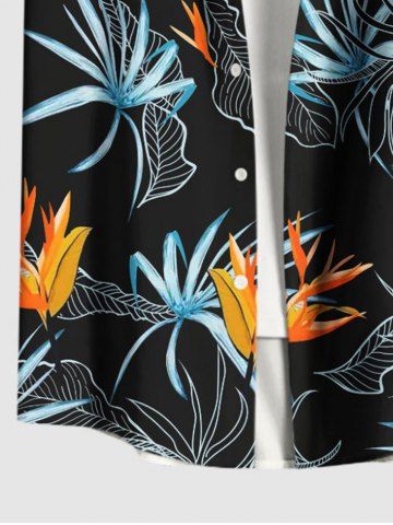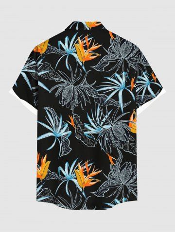 Plus Size Flowers Print Buttons Pocket Hawaii Shirt For Men - Noir - Noir