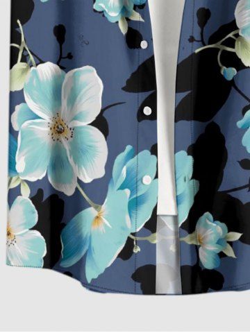 Plus Size Flowers Print Buttons Pocket Hawaii Shirt For Men - Bleu-gris - 6xl
